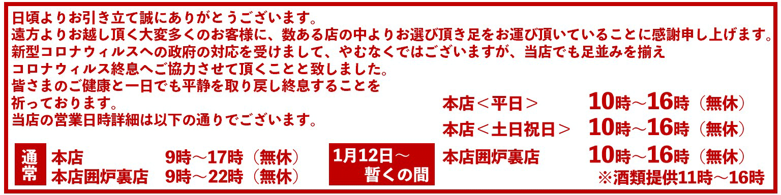囲炉裏(全日)10時~17時※酒類提供は10時~17時